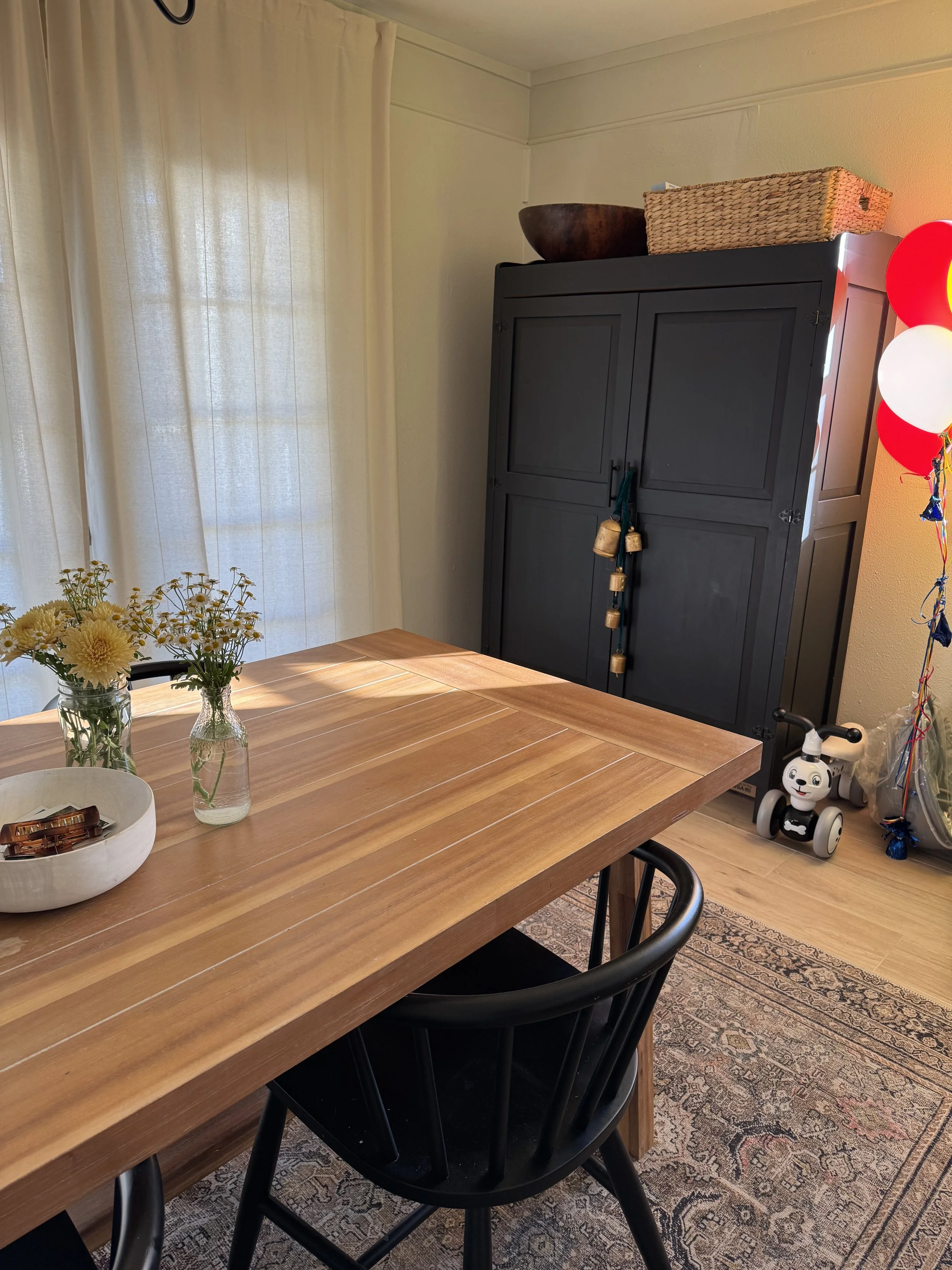 Rainbow balloons + flowers! The morning of the party I picked up some colored balloons at our grocery store and we got a few bunches of flowers from Trader Joe’s to make some small vases.