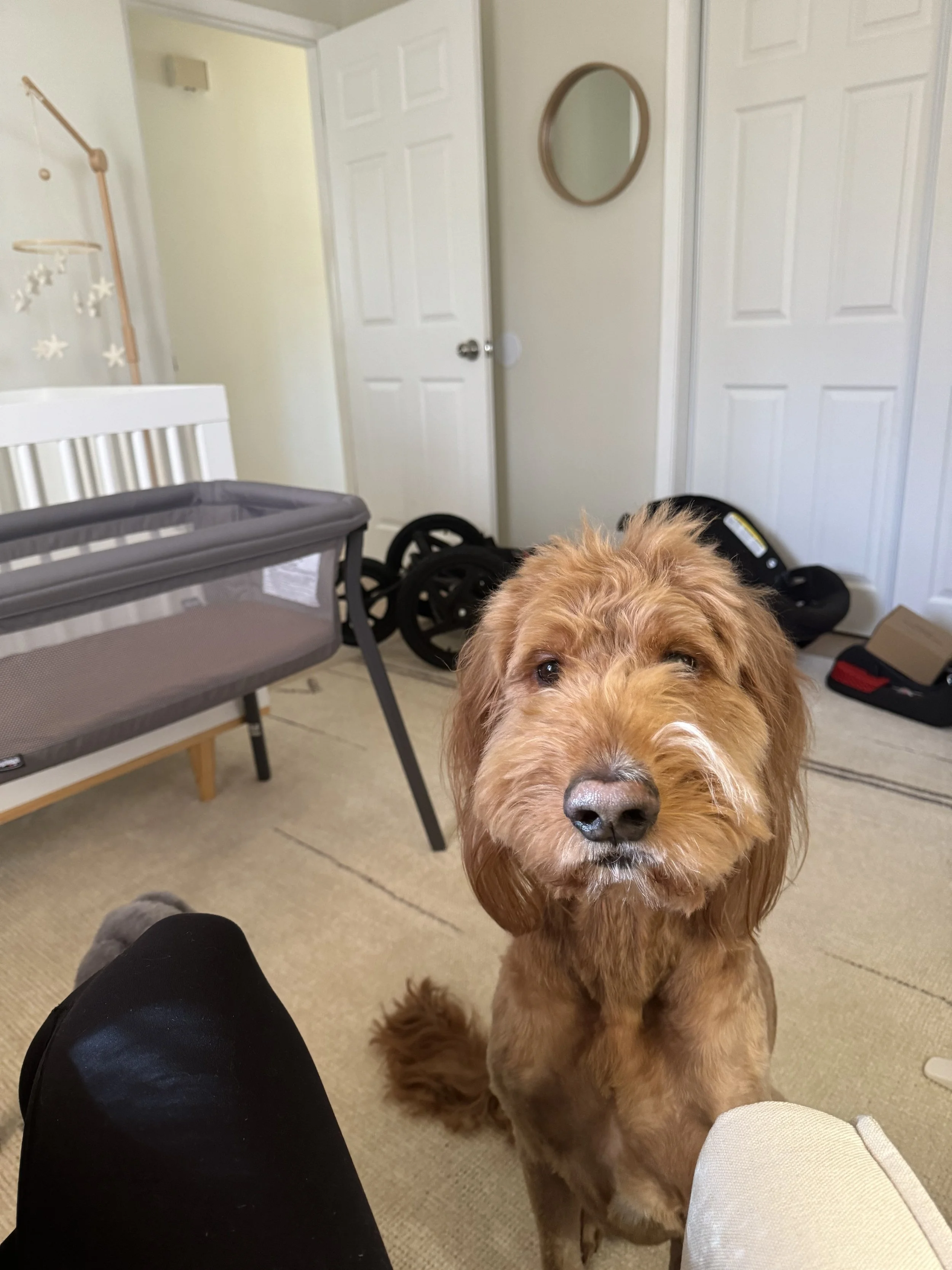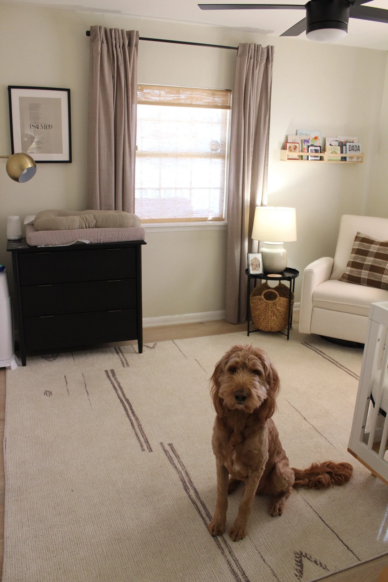 Our dog was the best little buddy while I read + dreamed in our rocker. I spent a lot of days in here and he was also right by my side- I think he could tell something fun was coming!